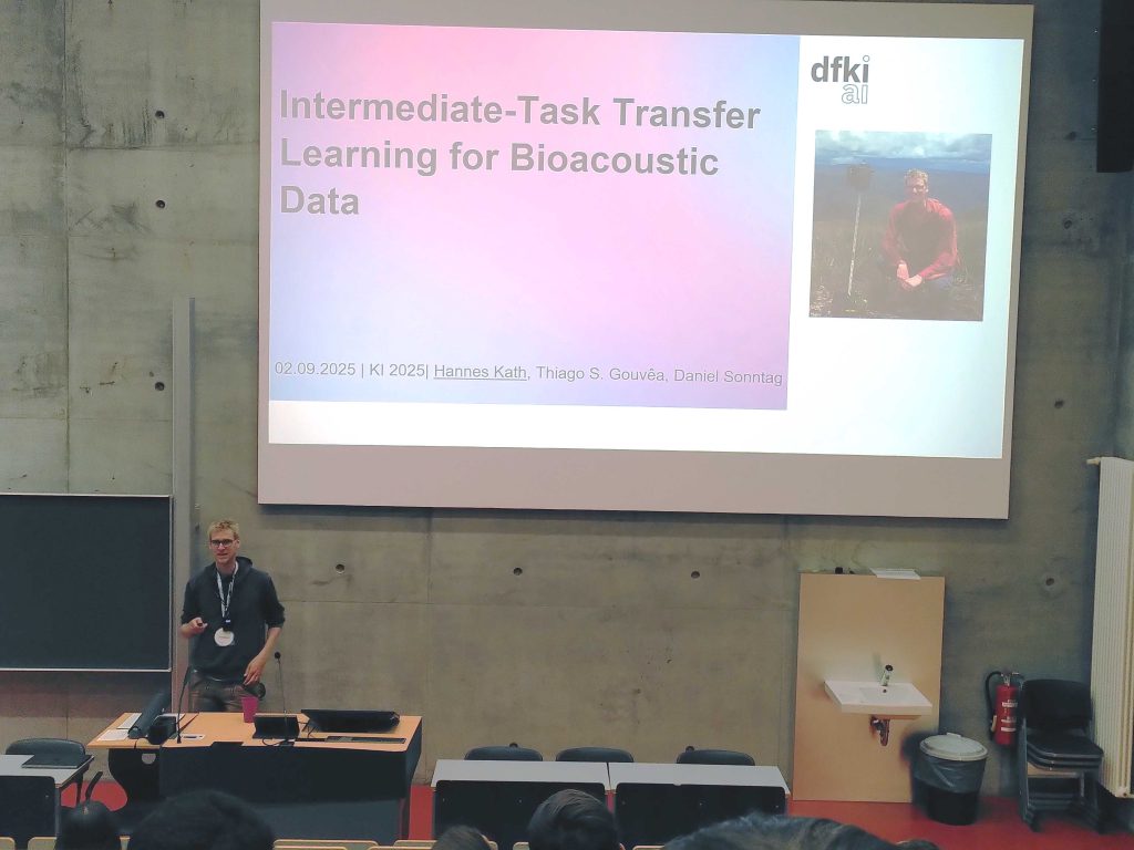 At the KI2025 Conference in Potsdam, Hannes Kath from the Chair of Applied Artificial Intelligence at the University of Oldenburg and the Interactive Machine Learning department presented the research paper “Intermediate-Task Transfer Learning for Bioacoustic Data”.